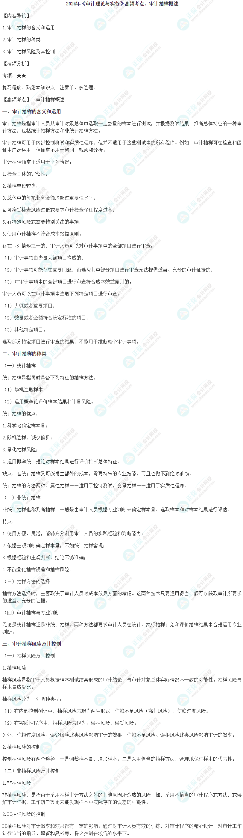 以下是2024中级审计师《审计理论与实务》高频考点:审计抽样概述