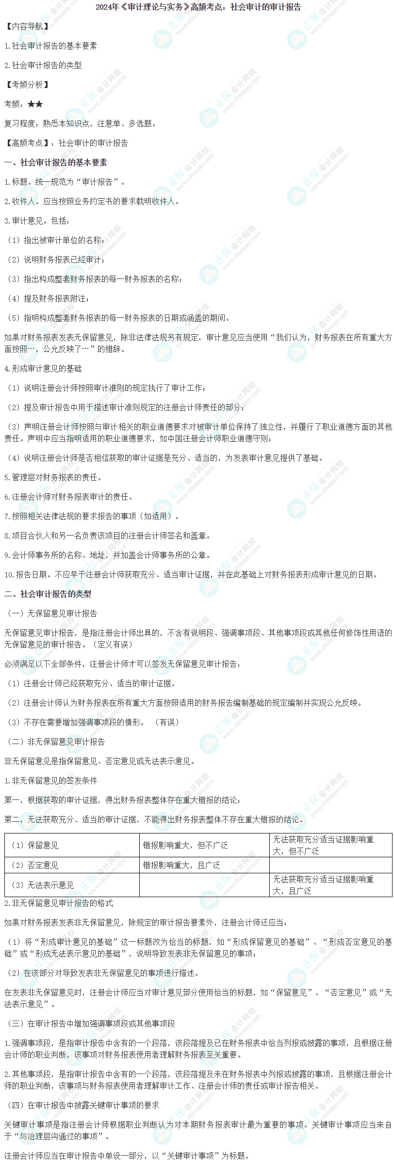以下是2024中级审计师《审计理论与实务》高频考点:社会审计的审计报告