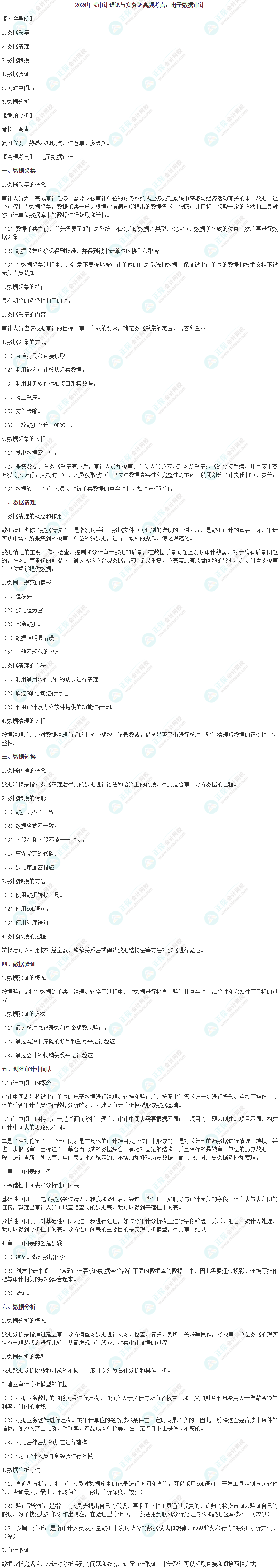 以下是2024中级审计师《审计理论与实务》高频考点:电子数据审计
