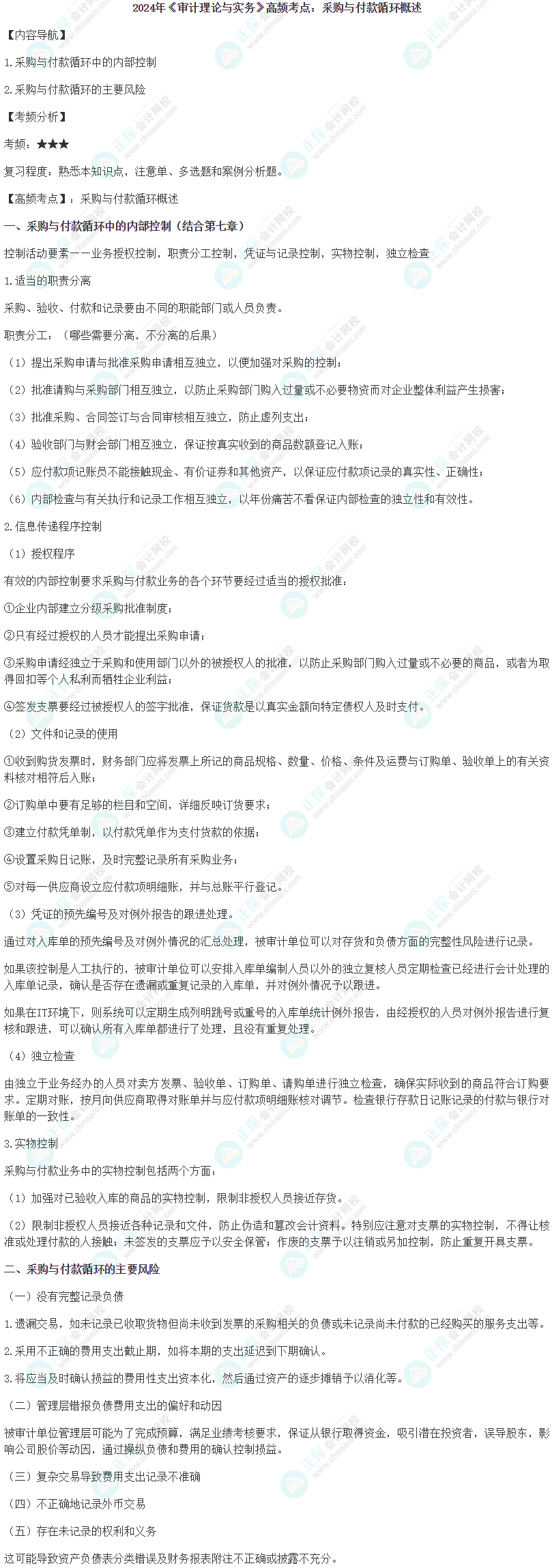 以下是2024中级审计师《审计理论与实务》高频考点:采购与付款循环概述