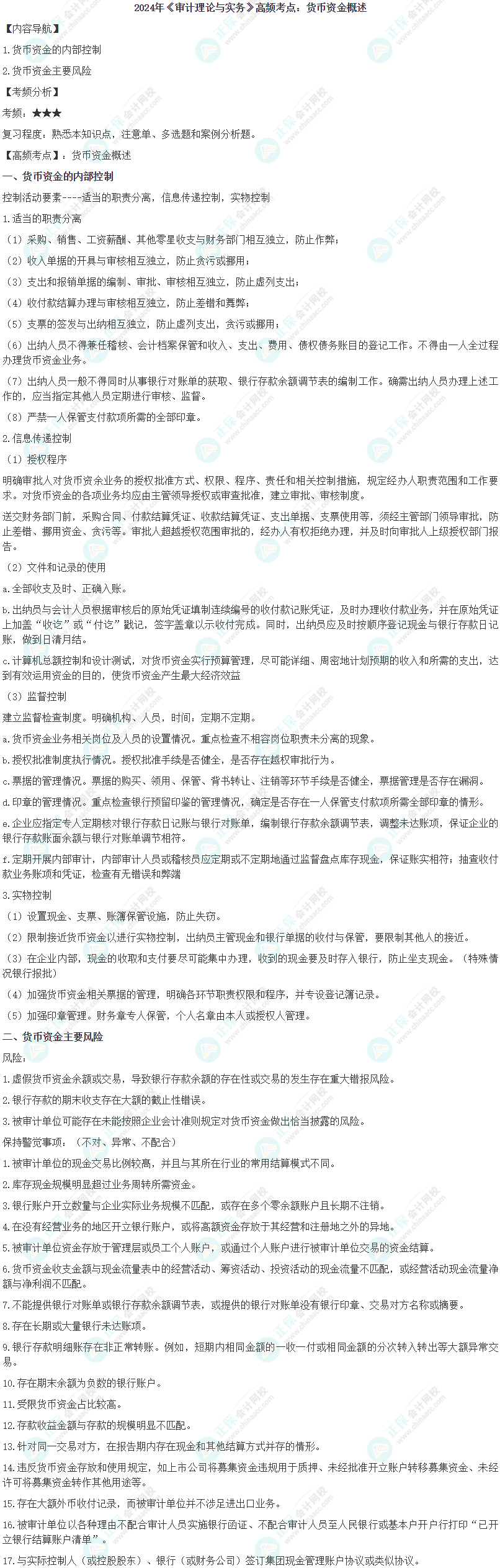 以下是2024中级审计师《审计理论与实务》高频考点:货币资金概述