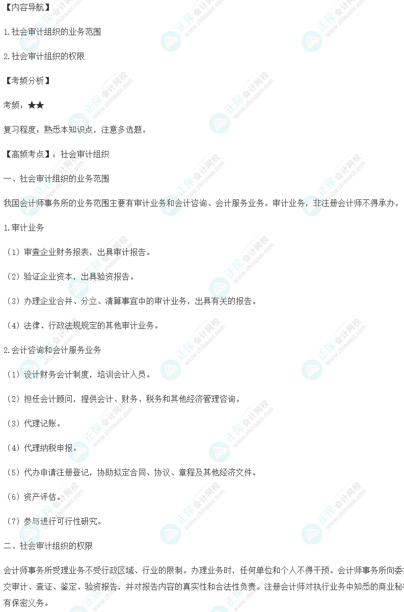 2023年审计师考试9月24日开考,现在正是紧张的备考阶段,各位考生应了解考试考点,提高复习效率!正保会计网校为各位备战中级审计师考试的考生带来了《审计理论与实务》高频考点,跟上老师的步伐按计划完成学习,马上开始学习今天的《审计理论和实务》高频考点:社会审计组织。