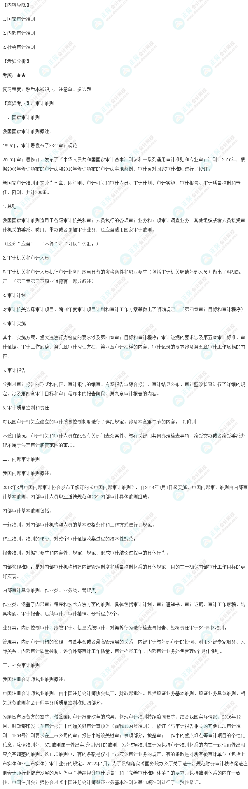 2023年审计师考试9月24日开考,现在正是紧张的备考阶段,各位考生应了解考试考点,提高复习效率!正保会计网校为各位备战中级审计师考试的考生带来了《审计理论与实务》高频考点,跟上老师的步伐按计划完成学习,马上开始学习今天的《审计理论和实务》高频考点:审计准则。