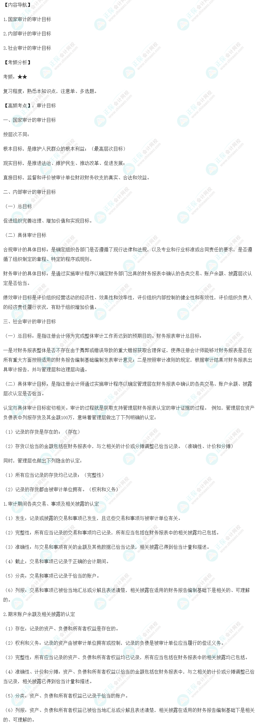 2023年《审计理论与实务》高频考点:审计目标