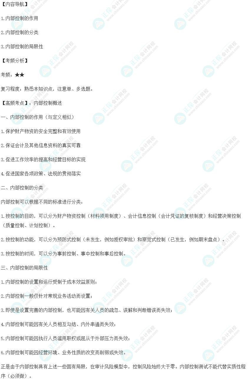2023年审计师考试9月24日开考,现在正是紧张的备考阶段,各位考生应了解考试考点,提高复习效率!正保会计网校为各位备战中级审计师考试的考生带来了《审计理论与实务》高频考点,跟上老师的步伐按计划完成学习,马上开始学习今天的《审计理论和实务》高频考点:内部控制概述。
