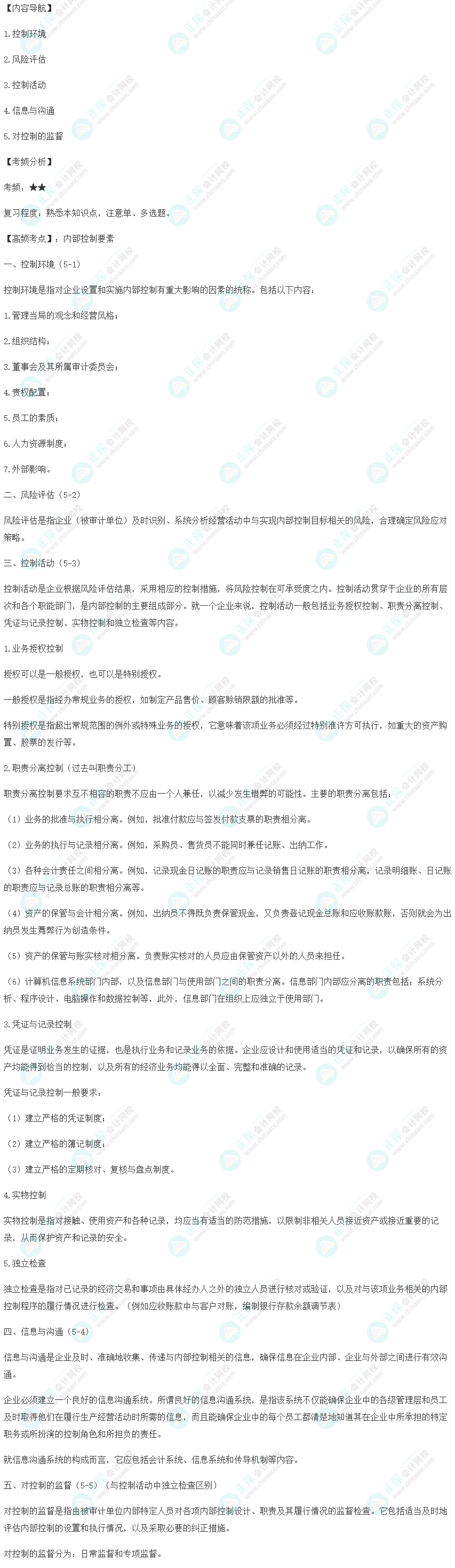 2023年审计师考试9月24日开考,现在正是紧张的备考阶段,各位考生应了解考试考点,提高复习效率!正保会计网校为各位备战中级审计师考试的考生带来了《审计理论与实务》高频考点,跟上老师的步伐按计划完成学习,马上开始学习今天的《审计理论和实务》高频考点:内部控制要素。