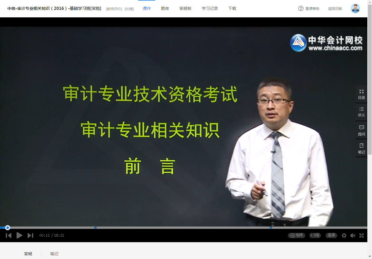 温馨提示:报考2017年中级审计师辅导课程的学员,报课后可先学习2016年辅导课程,祝您学习愉快!