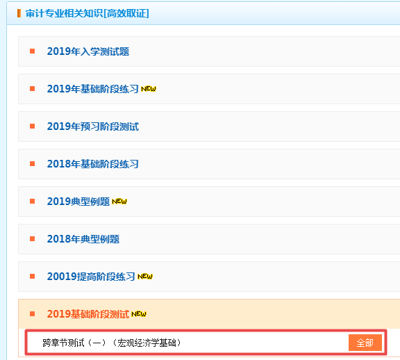 截止至8月20日 2019审计师《审计专业相关知识》基础阶段跨章节测试题库开通。