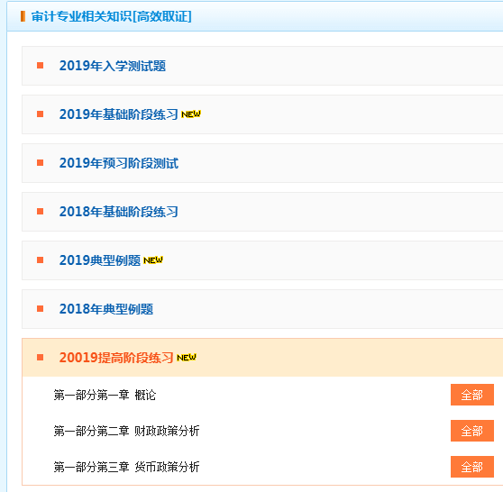 截止至8月20日 2019审计师《审计专业相关知识》强化提高阶段题库开通。