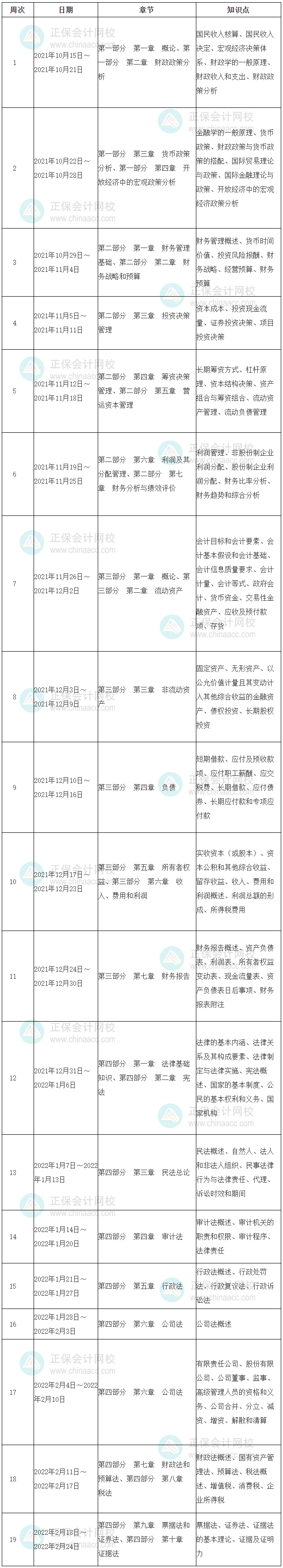 备注:本计划表从2021年10月15日开始执行,计划于2022年2月24日结束;学员可根据本计划表的提示,结合自己的时间安排,完成预习计划。