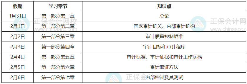 下面是为春节假期准备的2022年《审计理论与实务》“春节7天学习计划”,大家可以在这个基础上再根据自己的时间调整。