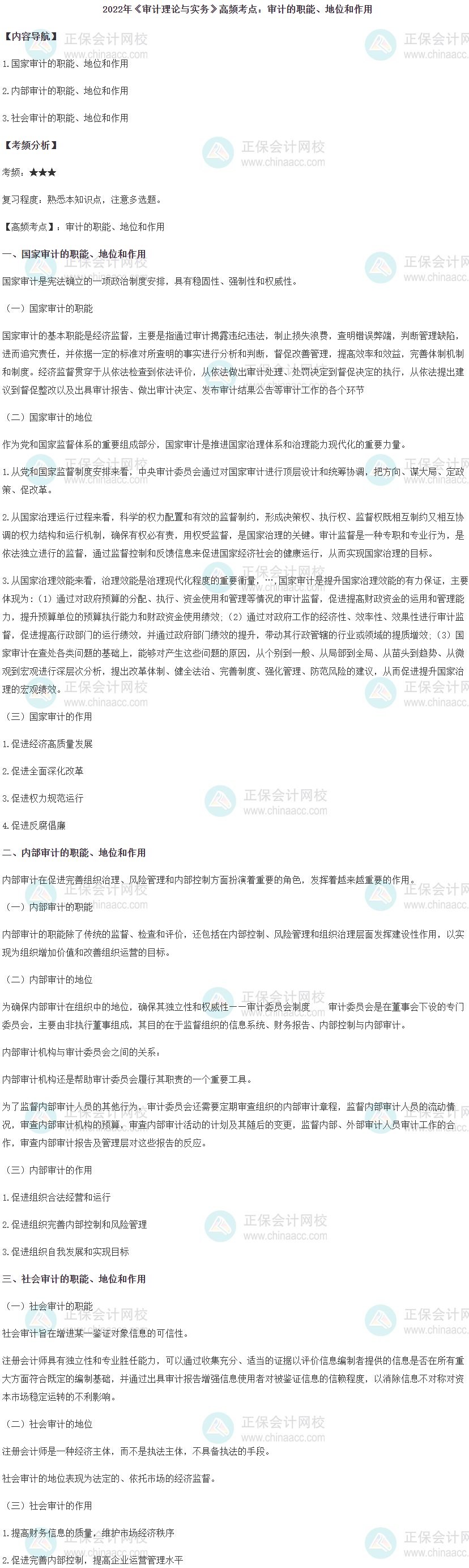 备考时间越来越少,大家一定要重点关注考试的重难点!正保会计网校为大家精心整理了中级《审计理论与实务》高频考点,帮助大家高效备考!以下是2022年中级《审计理论与实务》第一部分第一章的高频考点,一起来看一下吧!