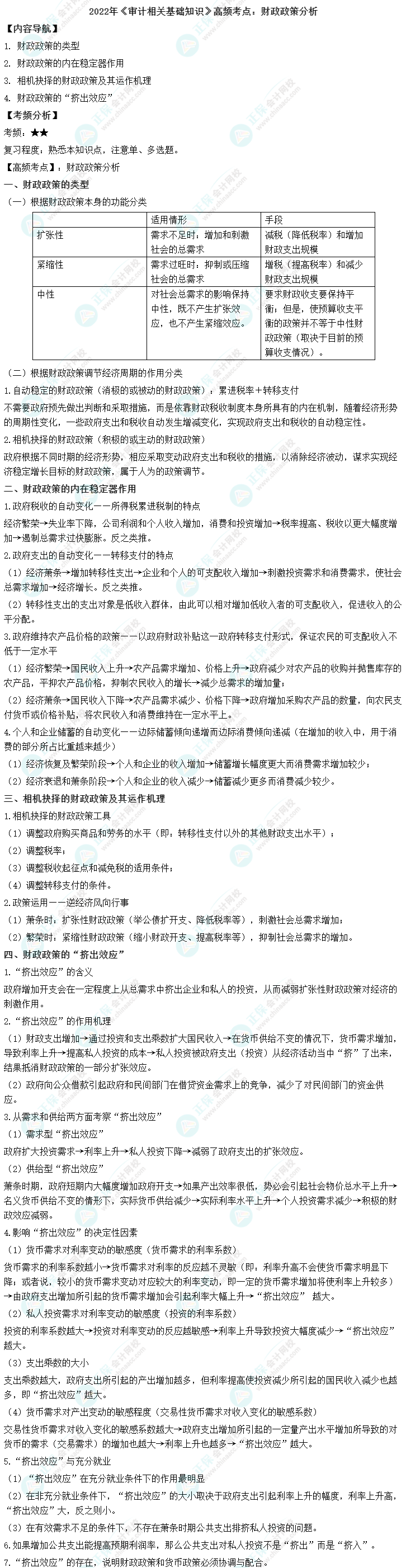 2022中级《审计相关基础知识》高频考点:财政政策分析