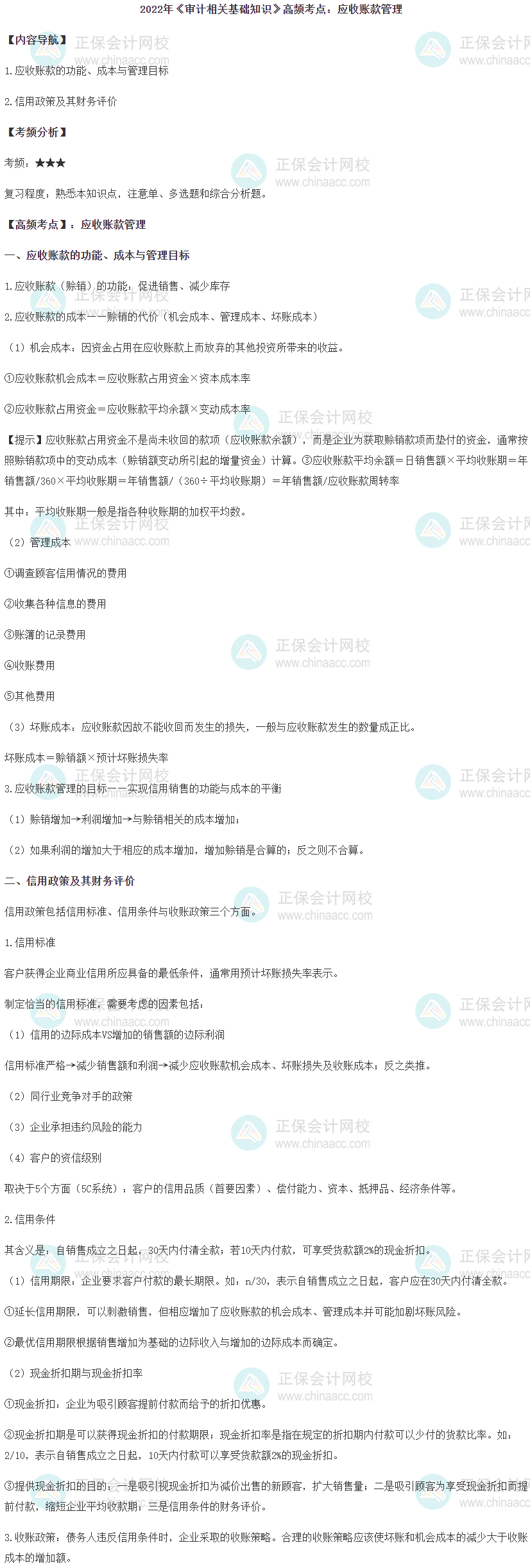 2022年审计师考试9月25日举行,留给大家的备考时间越来越少,中级《审计相关基础知识》第二部分第五章高频考点,帮助大家高效备考!一起来看一下吧!