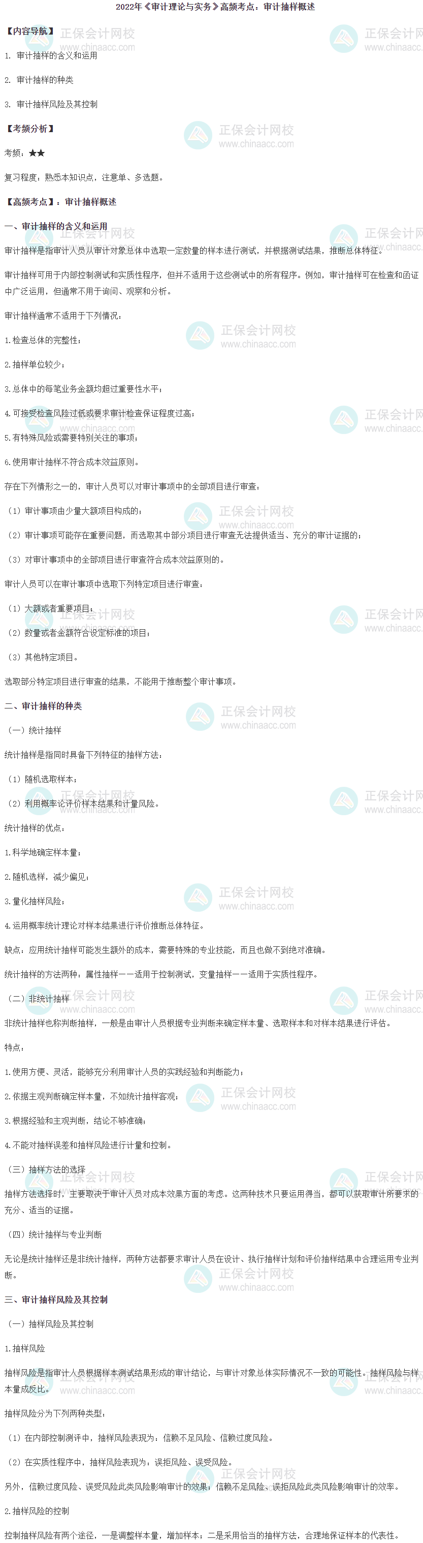 2022中级《审计理论与实务》高频考点:审计抽样概述