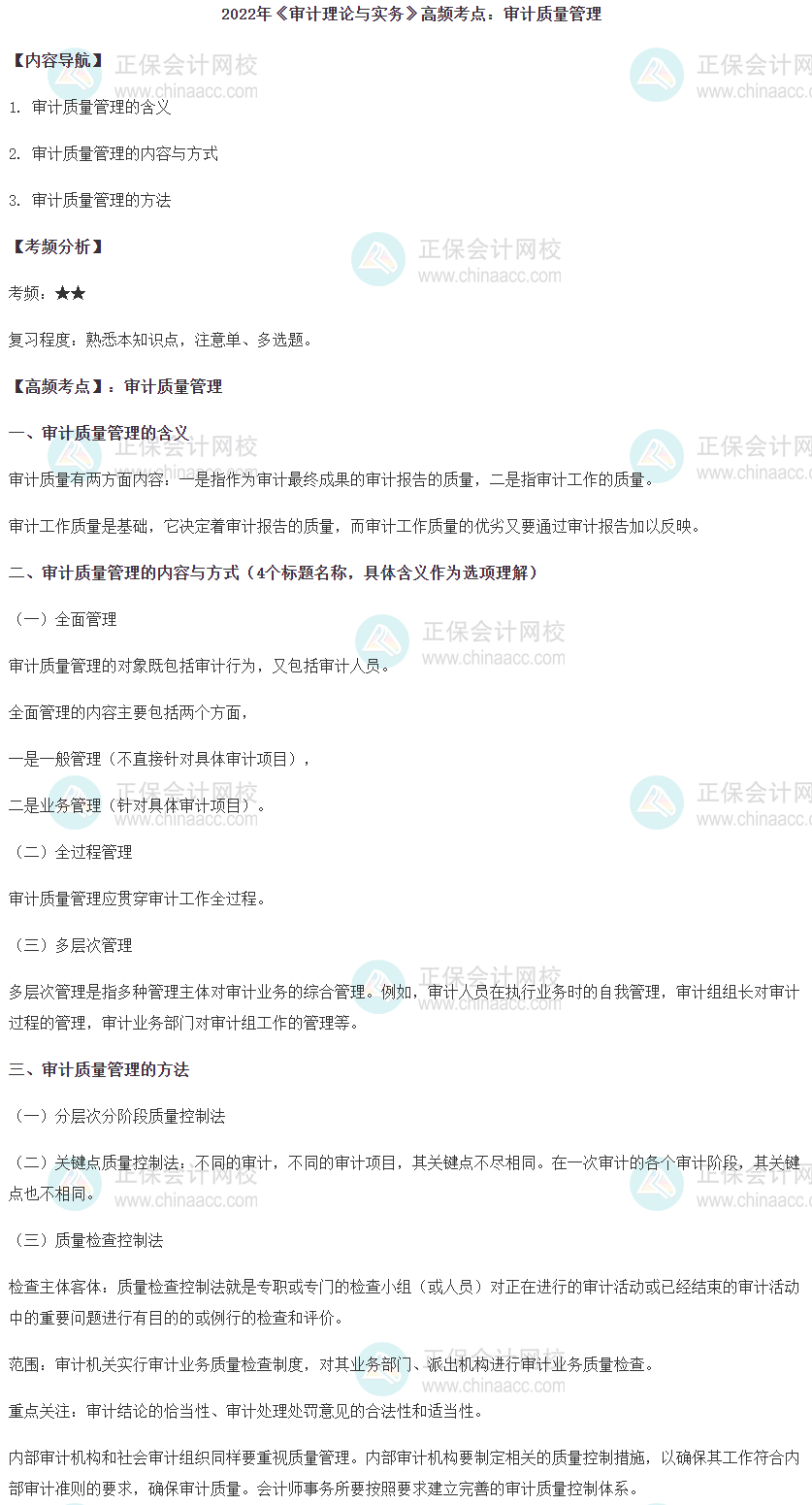 备考时间越来越少,大家一定要重点关注考试的重难点!正保会计网校为大家精心整理了中级《审计理论与实务》高频考点,帮助大家高效备考!以下是2022年中级《审计理论与实务》第一部分第十二章的高频考点,一起来看一下吧!