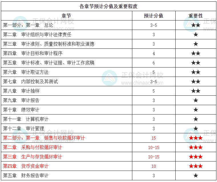 以上是对《审计理论与实务》的各章节的分值和重要性的列示,在2023年的预习备考中可以做一定的参考。需要考生在全面预习的基础之上,能够抓住重点进行预习。本着重者恒重的原则。在预习过程中抓住重点,分清主次,理清头绪。最后祝愿大家可以顺利通过2023年的审计师考试。