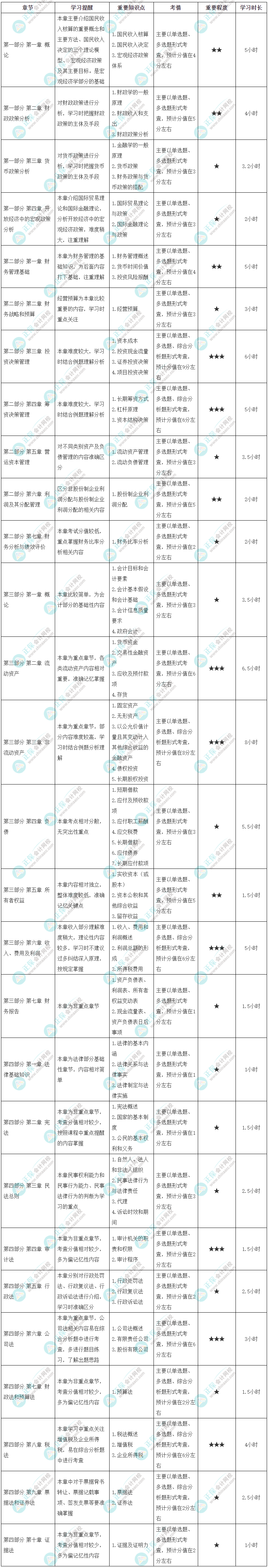 学员可根据本表的提示,结合自己的时间安排,学习情况进行细化,可以按照学习进度自己进行细微的调整。在学习过程中应突出重点,首先,要打好基础,学习好基础性的章节;其次,在基础性章节掌握的基础上重点把握重要章节,重要章节一般学习难度较大,建议考生可以多听几遍网课,及时进行练习,查漏补缺。另外要多做历年试题,把握出题角度,对学习有事半功倍的效果。