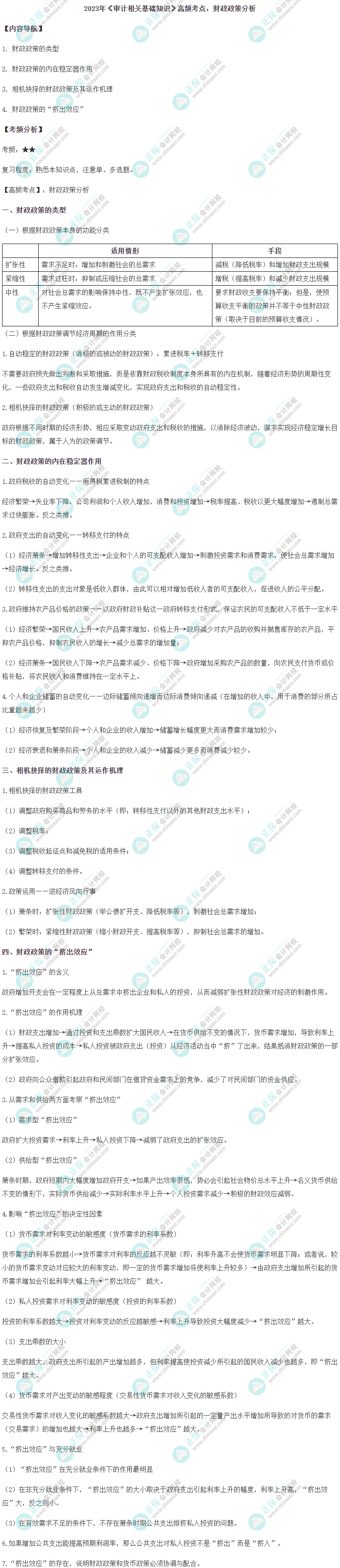 复习得越全面,通过审计师考试的几率越大!所以,请大家全面复习,且有重点地备考。以下是2023中级《审计相关基础知识》第一部分第二章的高频考点:财政政策分析,同学们一定要掌握好这些高频考点,及时查漏补缺。