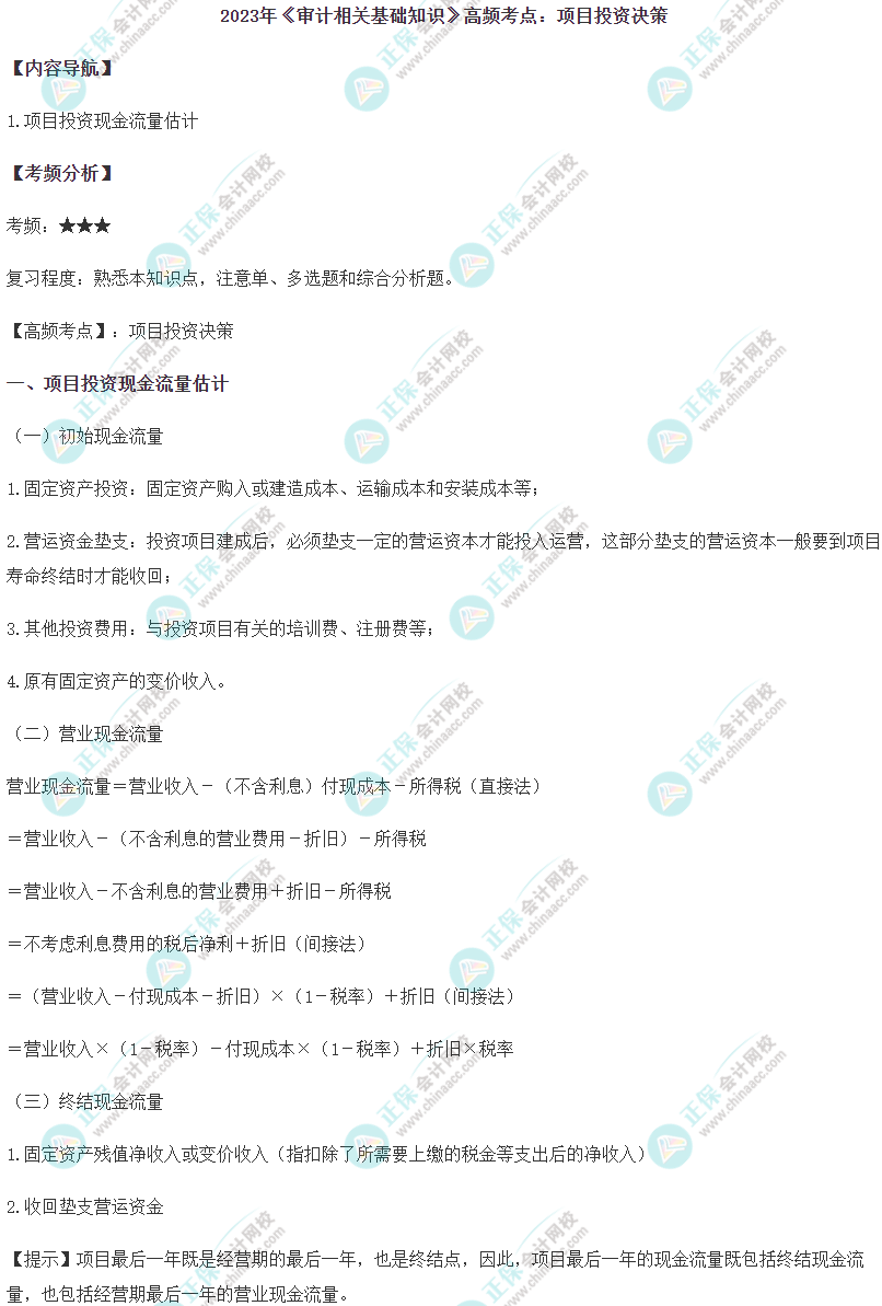 审计师基础知识要全面学习,备考的关键时期,也要抓住重点,尤其高频考点要熟记于心。以下是2023中级《审计相关基础知识》第二部分第二章高频考点:项目投资决策,赶快复习一下。