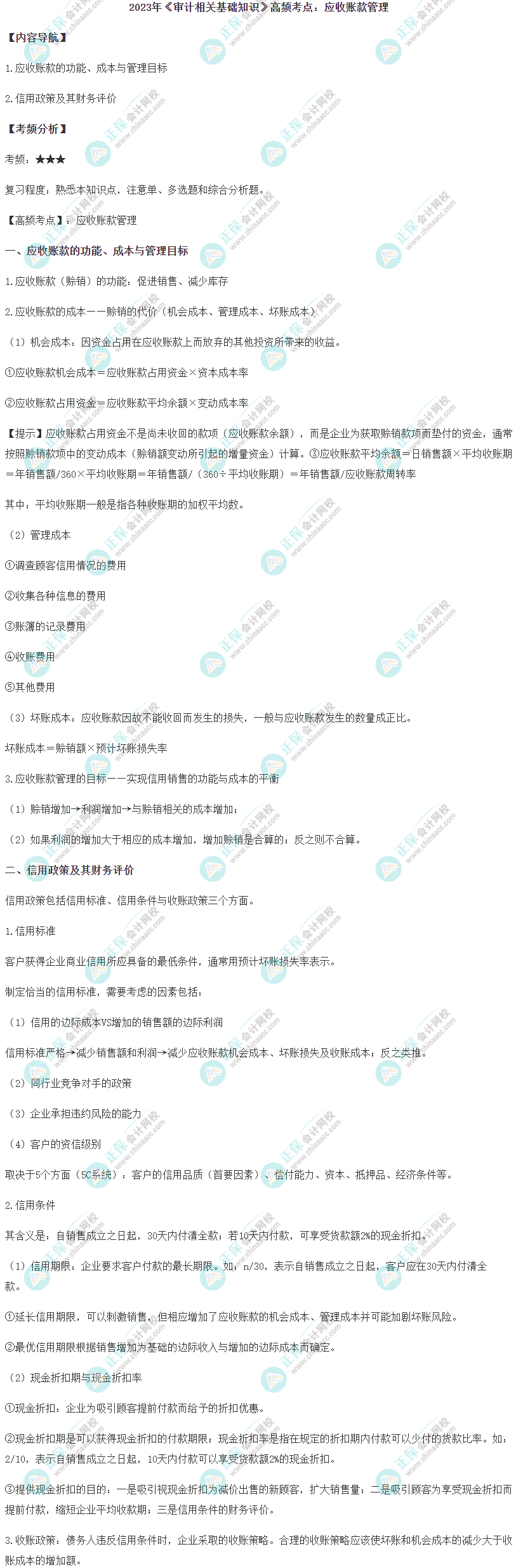 2023年审计师备考正在进行中,网校为各位考生整理了2023中级《审计相关基础知识》高频考点:应收账款管理,正在复习的同学快来查收!