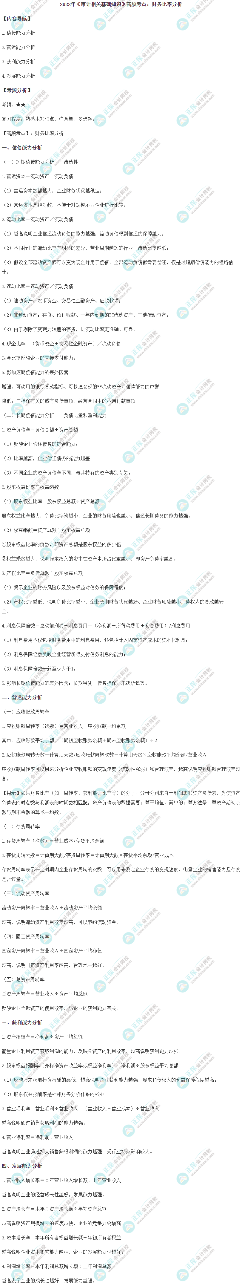 2023年审计师备考正在进行中,网校为各位考生整理了2023中级《审计相关基础知识》高频考点:财务比率分析,正在复习的同学快来查收!