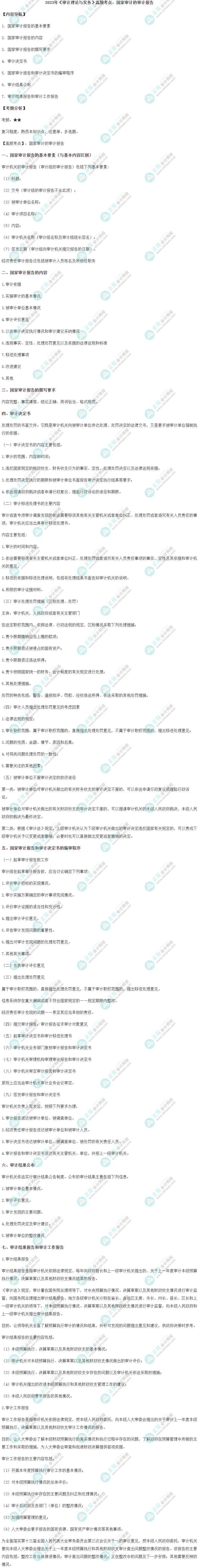 2023年审计师考试9月24日开考,现在正是紧张的备考阶段,各位考生应了解考试考点,提高复习效率!正保会计网校为各位备战中级审计师考试的考生带来了《审计理论与实务》高频考点,跟上老师的步伐按计划完成学习,马上开始学习今天的《审计理论与实务》高频考点:国家审计的审计报告。