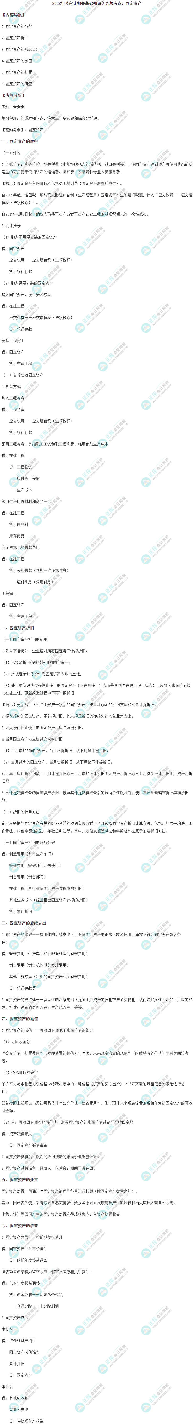 中级《审计相关基础知识》哪些知识点经常被考到呢?关注高频考点!下面是2023年中级《审计相关基础知识》高频考点:固定资产,你掌握了没?快复习一下吧。