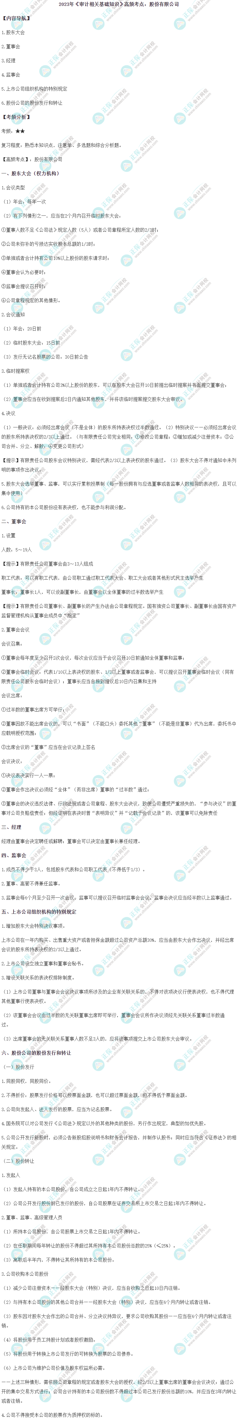 中级《审计相关基础知识》哪些知识点经常被考到呢?关注高频考点!下面是2023年中级《审计相关基础知识》高频考点:股份有限公司,你掌握了没?快复习一下吧。