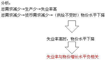 | 充分就业与稳定物价 | 矛盾——典型曲线:菲利普斯曲线 反映失业率和货币工资增长率之间负相关:如果工资上涨率(物价水平上涨率,也就是通货膨胀率)较低,则失业率较高;反之,如果工资上涨率较高,则失业率较低 |