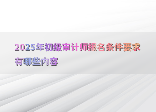 2025年初级审计师考试的报名条件相对宽松,具备高中及以上学历(包括高中、中专、职高、技校)即可报名。