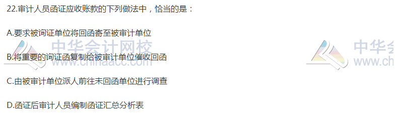 【答案解析】本题考查知识点:应收账款的审查。选项A,回函应该直接寄至事务所,而非被审计单位。选项B,应收账款的询证函回函不能由被审计单位催收。选项C,被审计单位对未回函企业无调查的责任,注册会计师应对其进行调查。