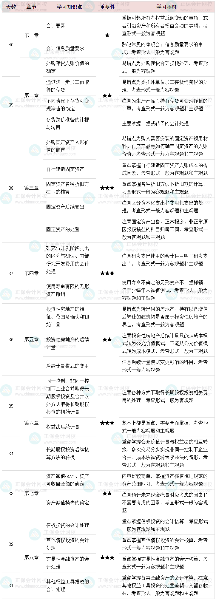 以下为40-31天学习计划表,赶快学习起来吧!(点击查看大图)