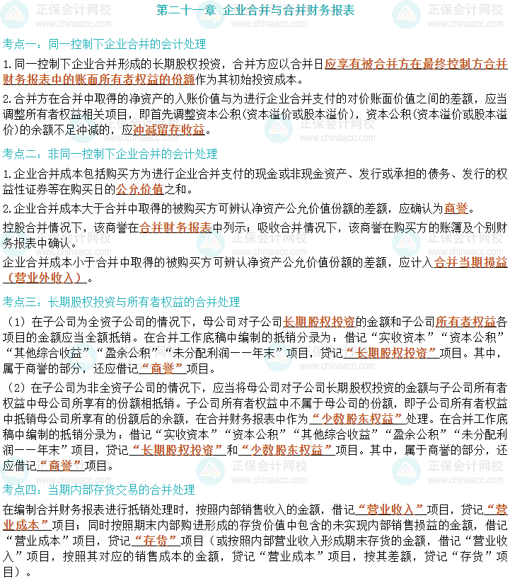 【默写本】2024中级会计实务填空记忆——企业合并与合并财务报表
