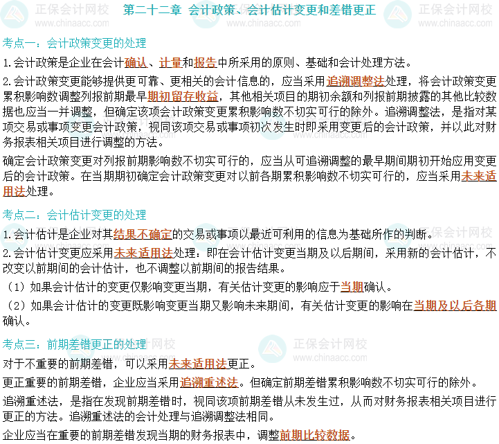 【默写本】2024中级会计实务填空记忆-会计政策、会计估计变更和差错更正