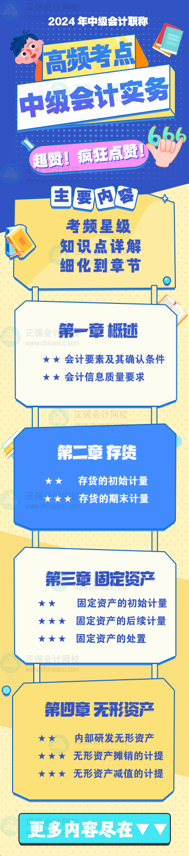 2024中级会计考试备考正在进行中,其中中级会计实务考查难度较大、内容较多,复习时间较长,正保会计网校老师为大家精心整理了中级会计职称《中级会计实务》高频考点,希望对广大备考考生在复习上有所助益。