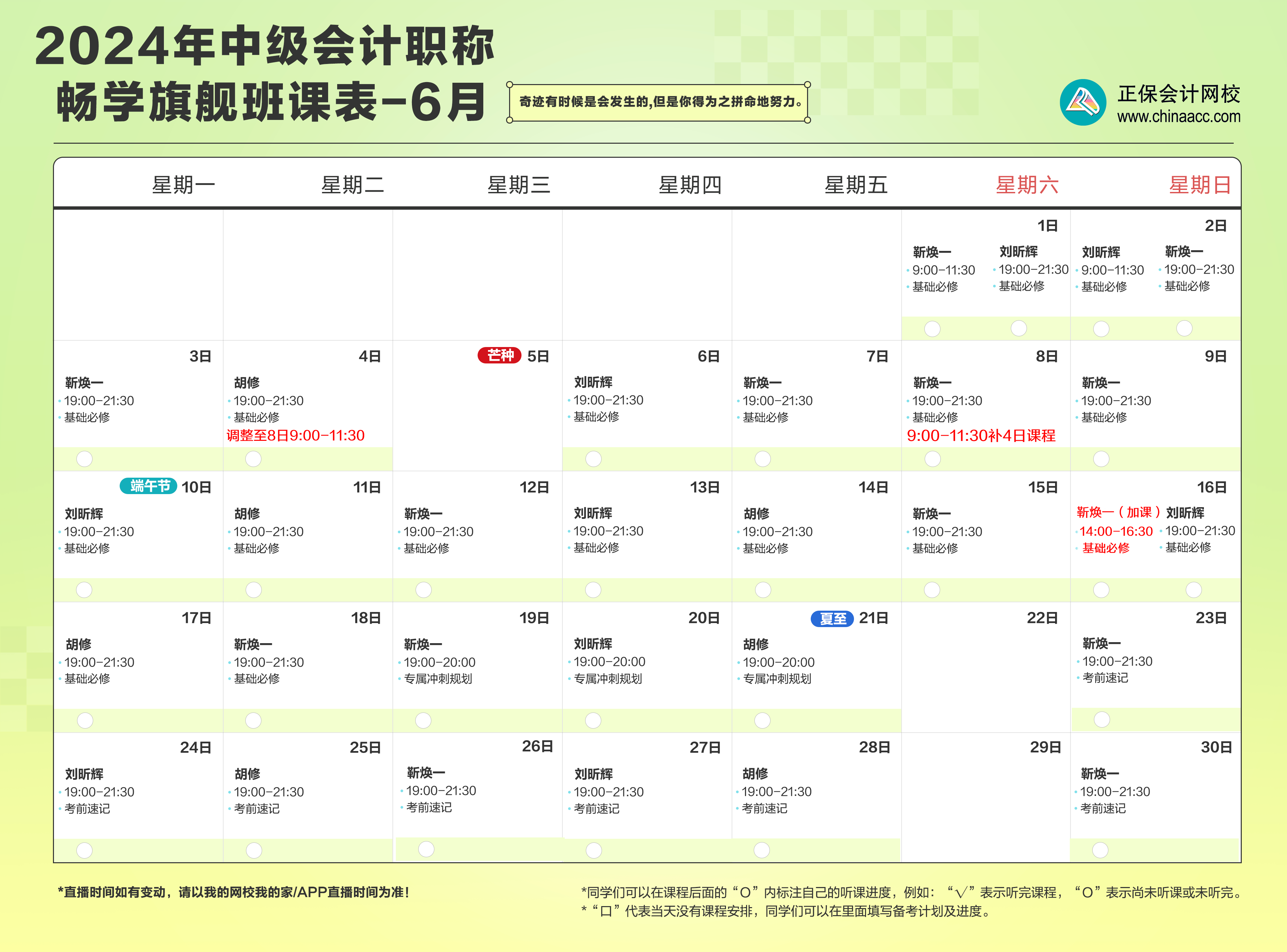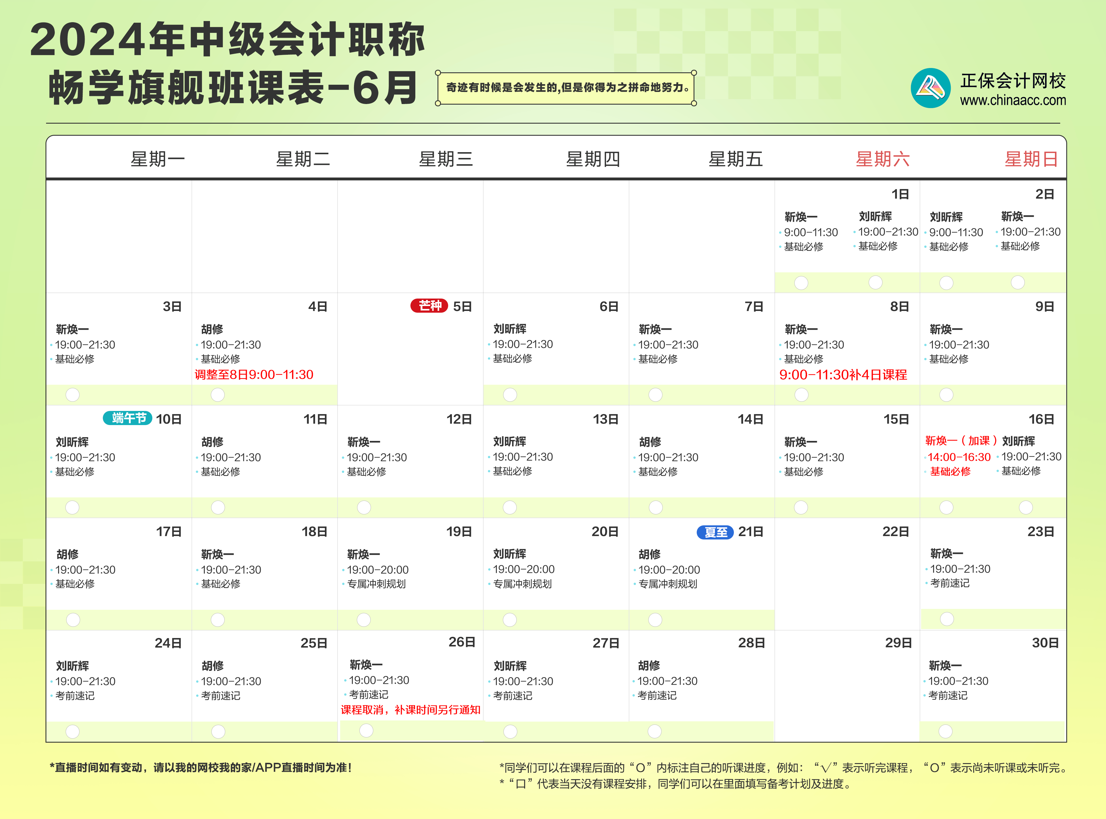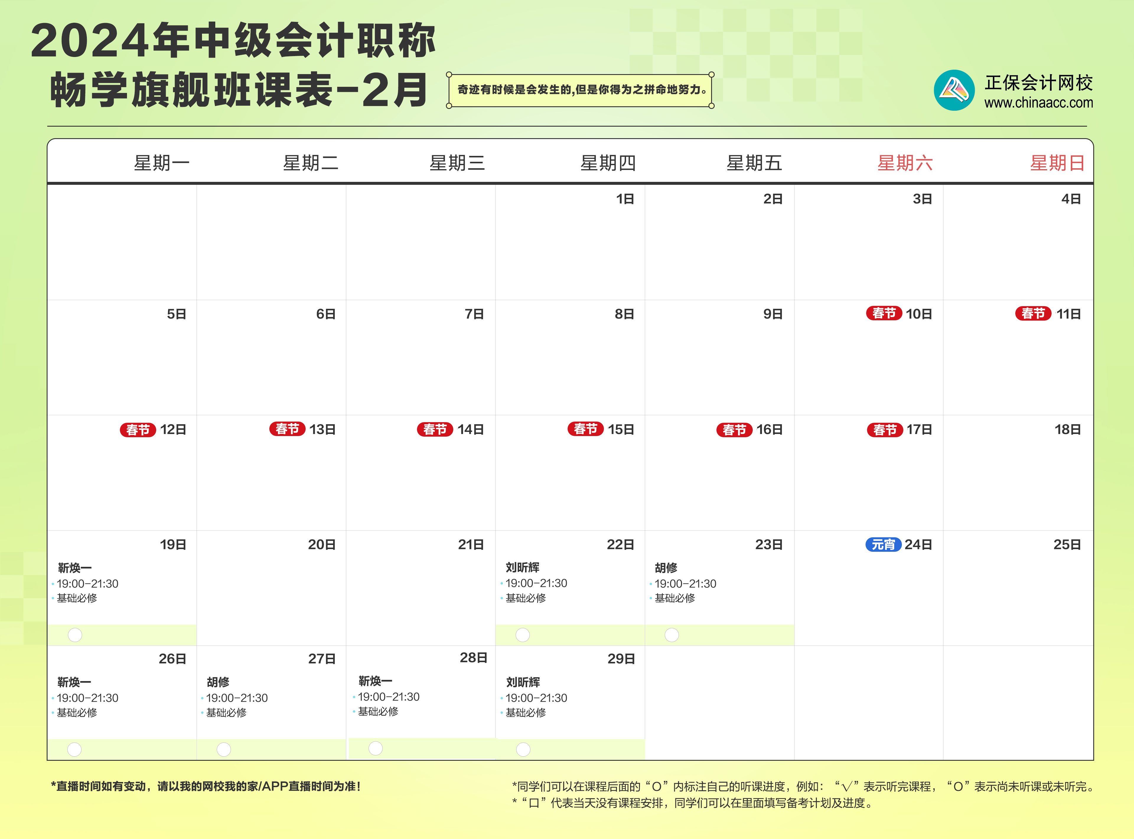 2024年中级会计职称畅学旗舰班直播课程安排来啦!各位同学要及时关注以及班级群消息,尽可能紧跟直播课程,学习效果才能更佳!
