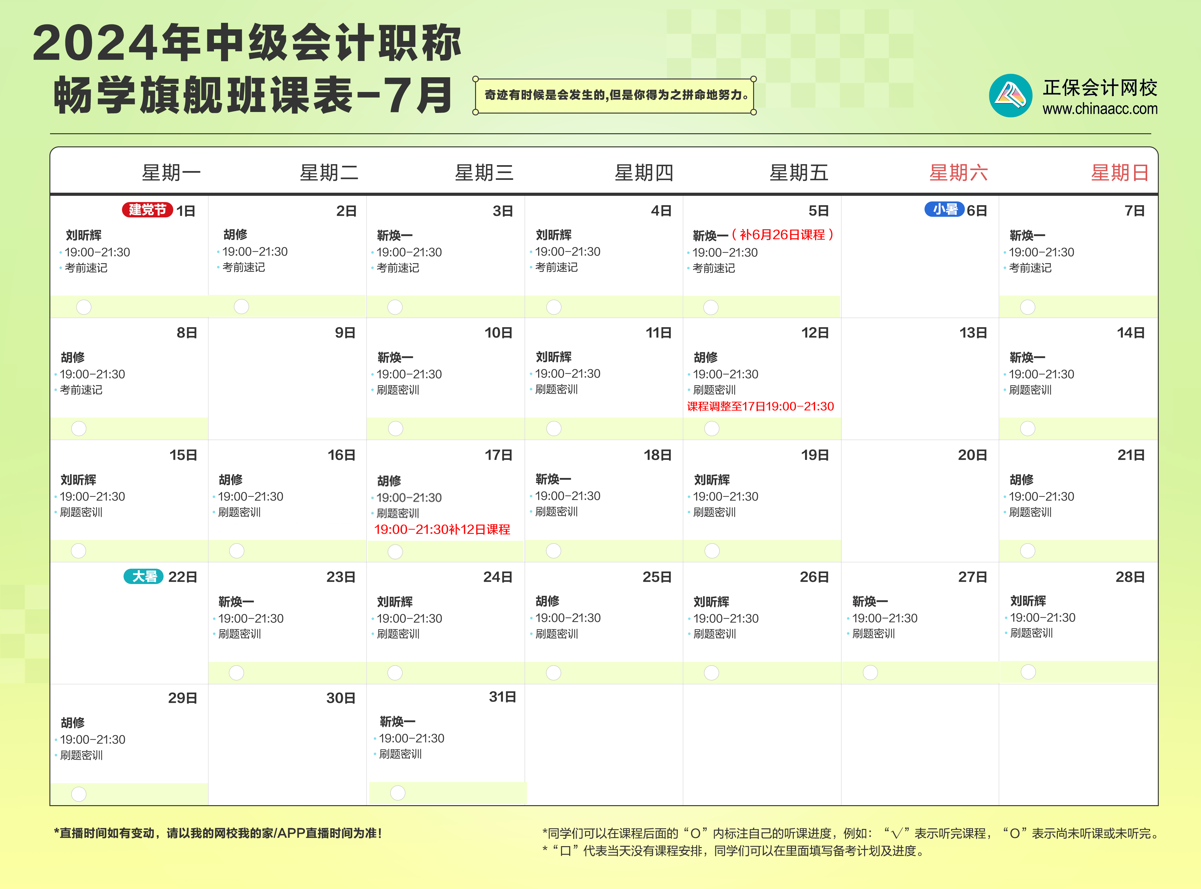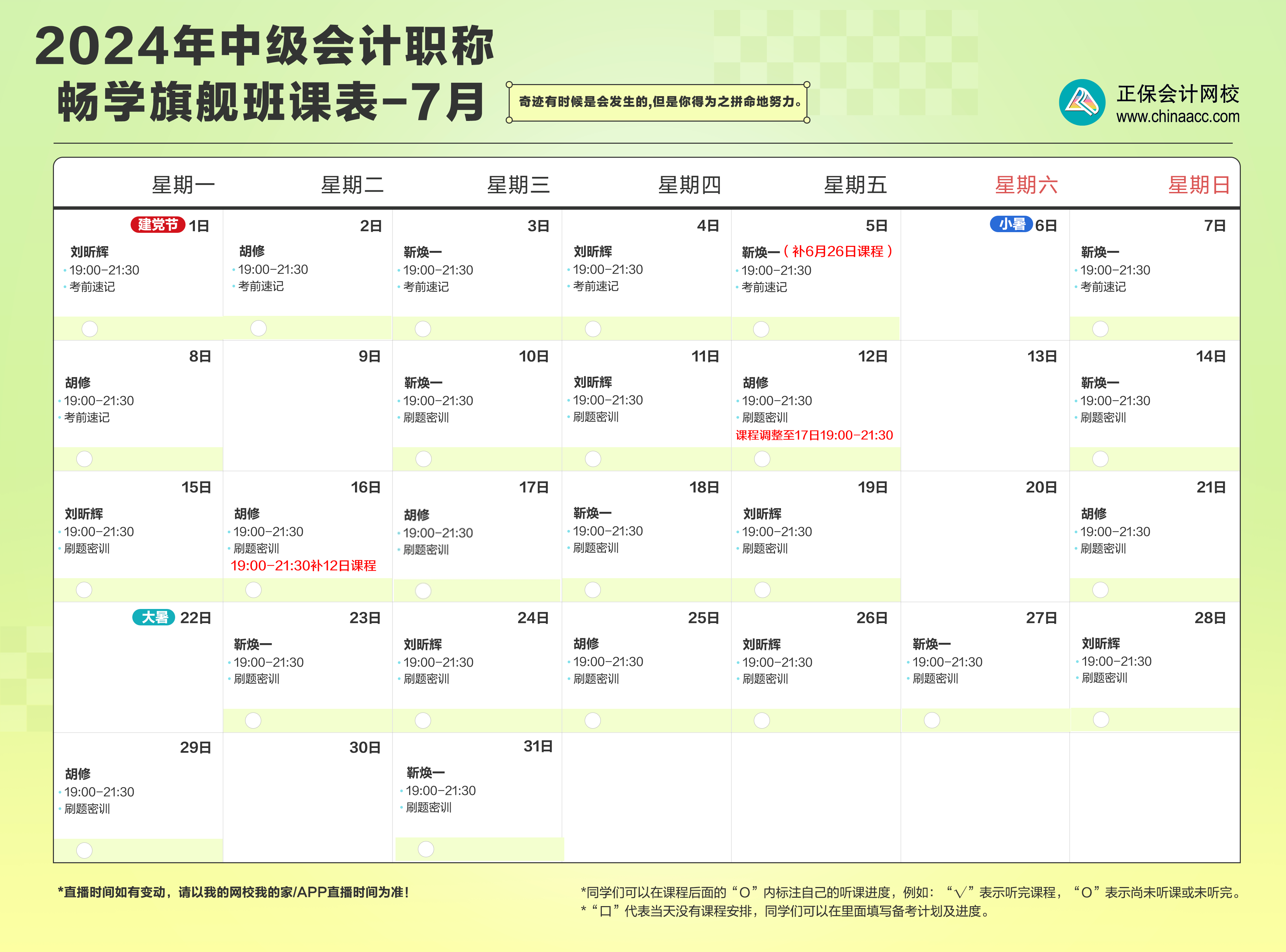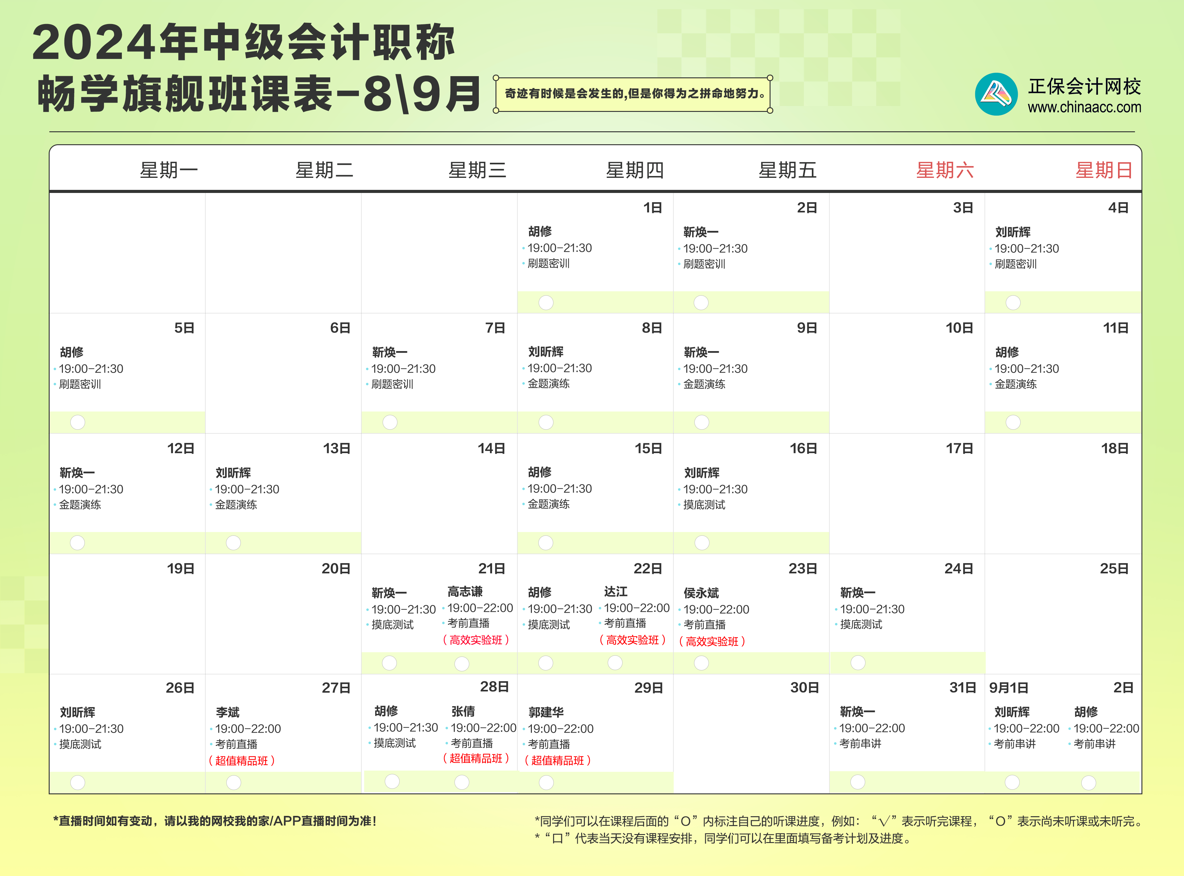 2024年中级会计职称畅学旗舰班直播课程安排来啦!各位同学要及时关注以及班级群消息,尽可能紧跟直播课程,学习效果才能更佳!