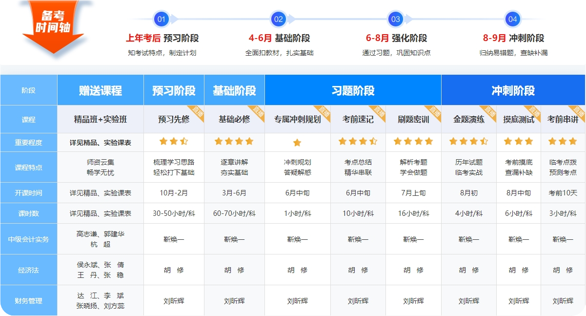 2024年畅学旗舰班课程体系全新升级,直播+录播双体系授课,满足不同人群备考需求。花一份钱,享受双重授课方式,录播+直播全方位解决备考难题,如果你懂得取舍,它可以适合所有类型的学员。现在购课赠送2023年中级会计畅学旗舰班全套课程,购课即学!赶紧来学习吧!点击查看课程详情>>