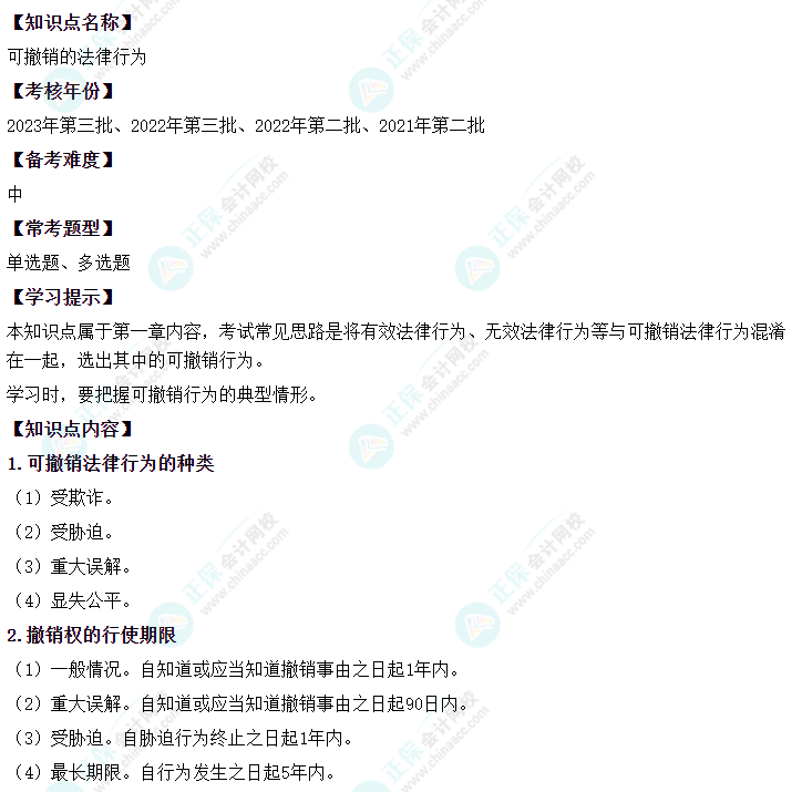 中级会计经济法二十大恒重考点——可撤销的法律行为