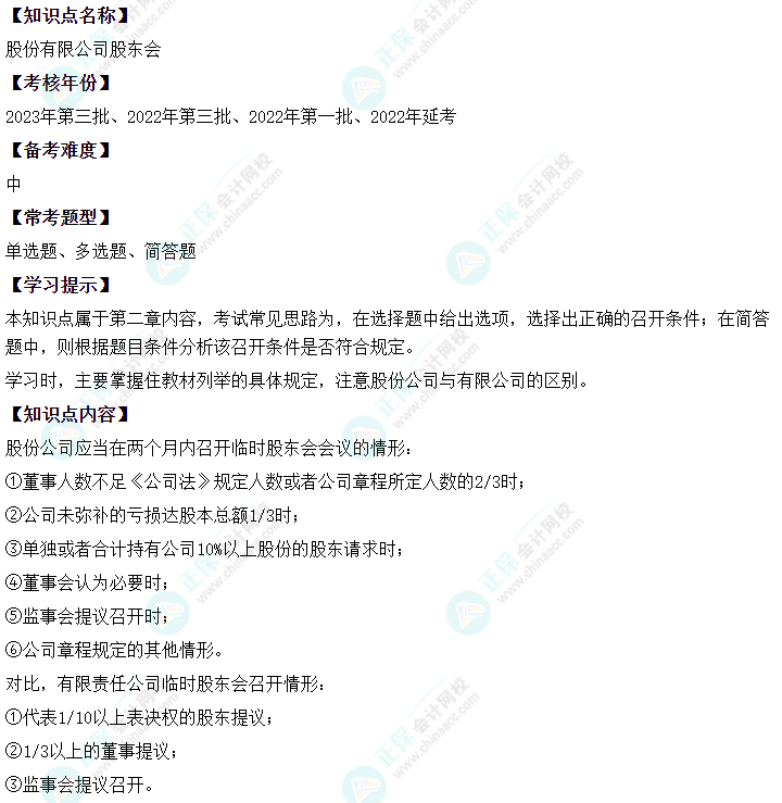 中级会计经济法二十大恒重考点——股份有限公司股东会