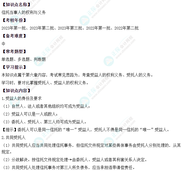 中级会计经济法二十大恒重考点——信托当事人的权力与义务