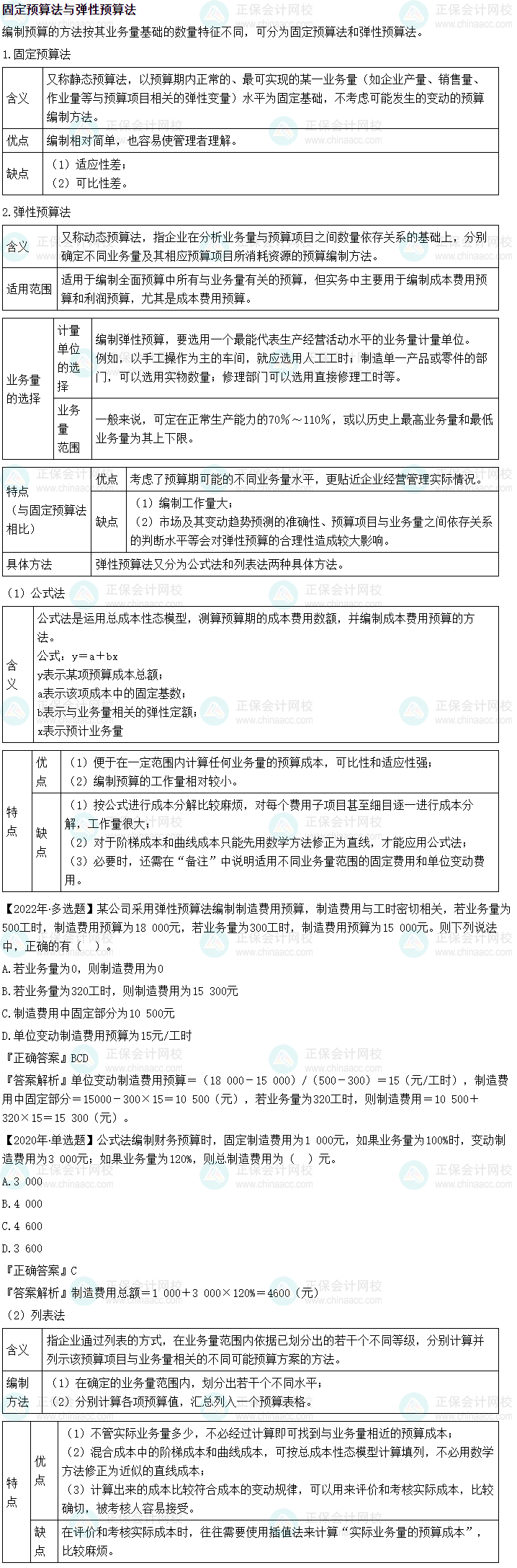 财务管理必会考点——固定预算法与弹性预算法