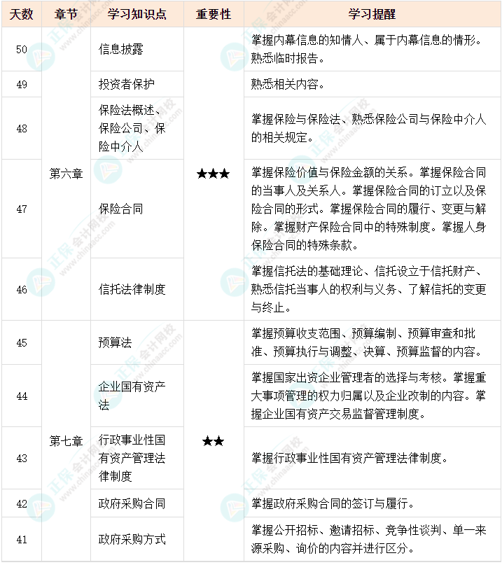 以下为50-41天学习计划表,赶快学习起来吧!(点击查看大图)
