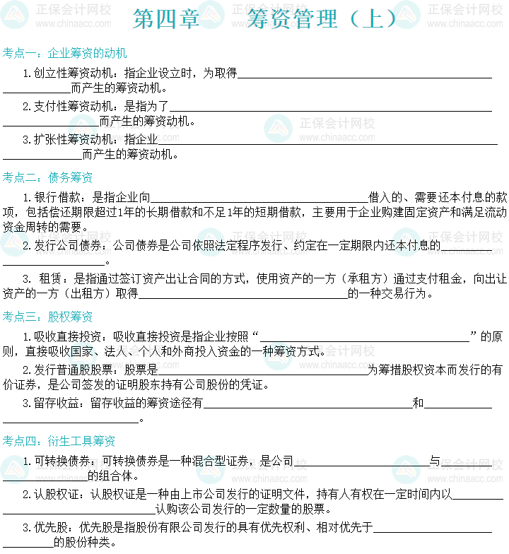 【默写本】2024中级会计财务管理填空记忆——筹资管理(上)
