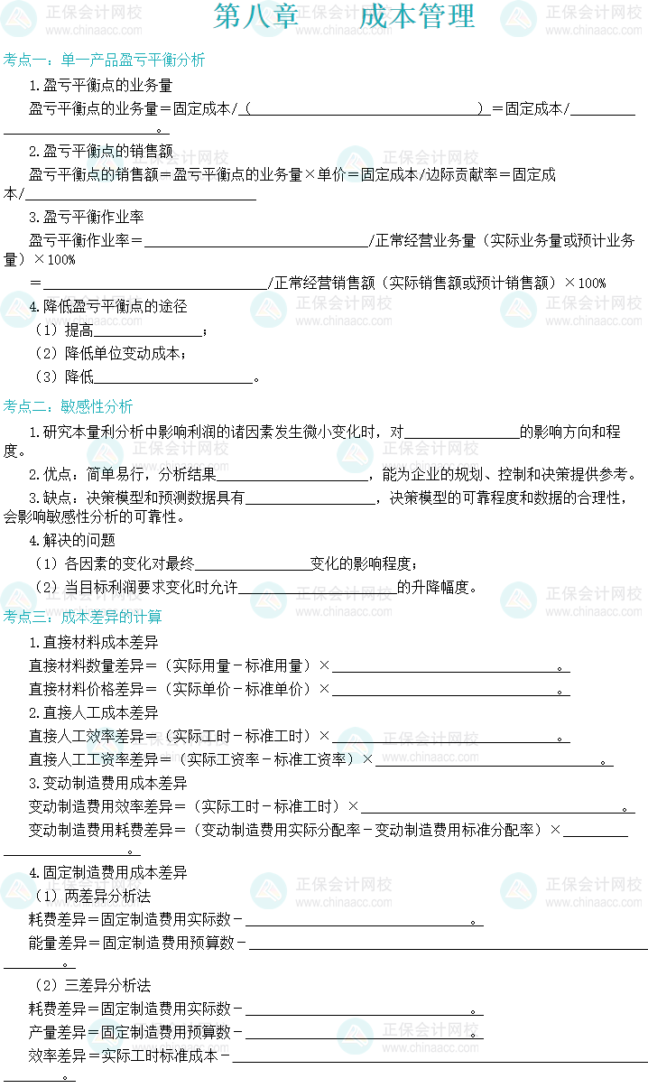 【默写本】2024中级会计财务管理填空记忆——成本管理