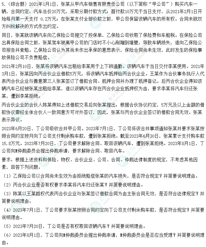 【考前5道题】2024中级会计《经济法》考前必做5道题