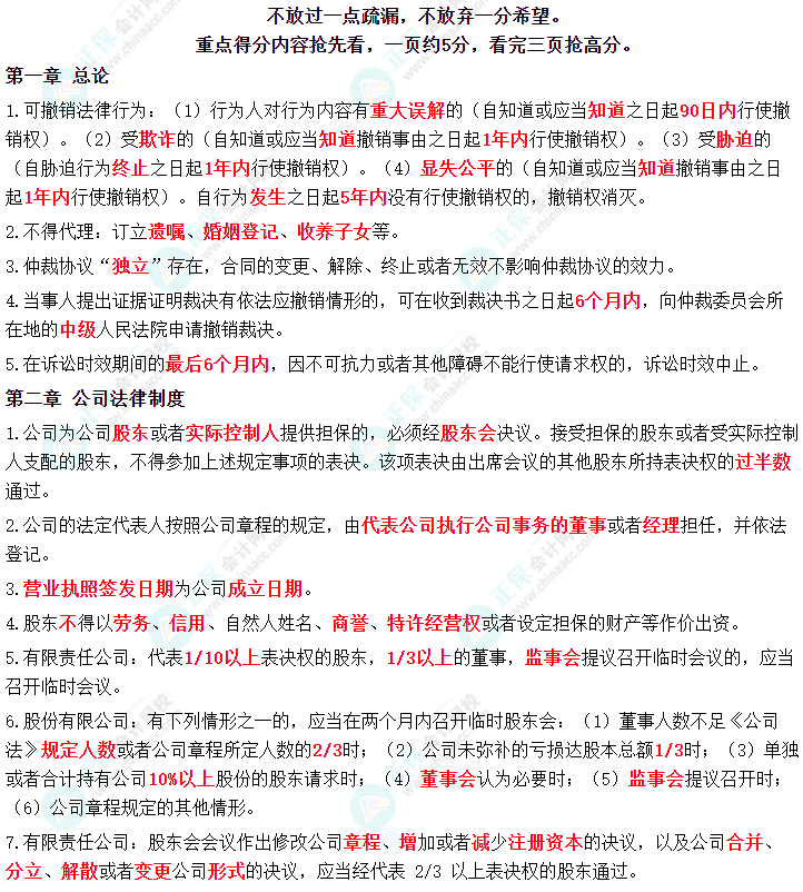 【考前急救】2024年中级会计职称《经济法》考前3页纸