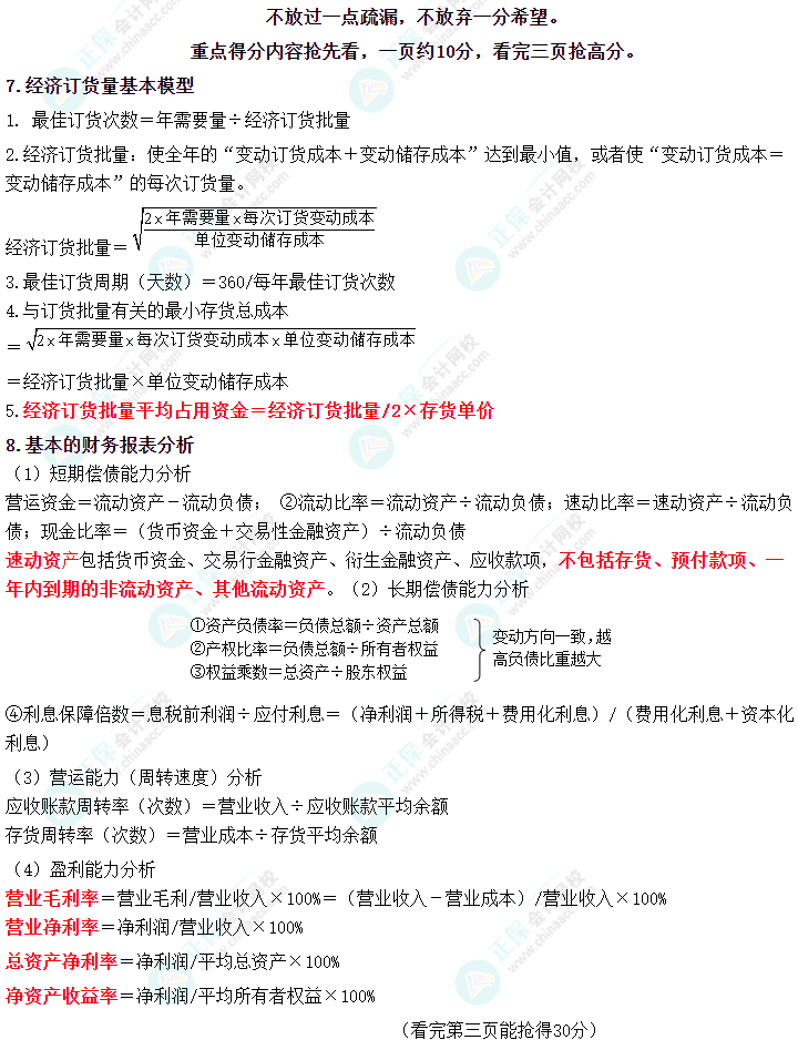 2024年中级会计职称考试在即!小编在此提醒大家,稳住备考冲刺!不放过一点疏漏,不放弃一分希望。下面是网校教研老师精心整理的考前冲刺3页纸,快来学习吧!