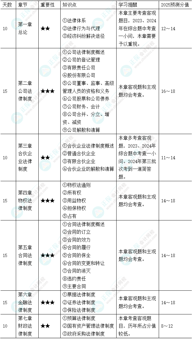 一、2025年中级会计职称《经济法》基础阶段学习计划安排
